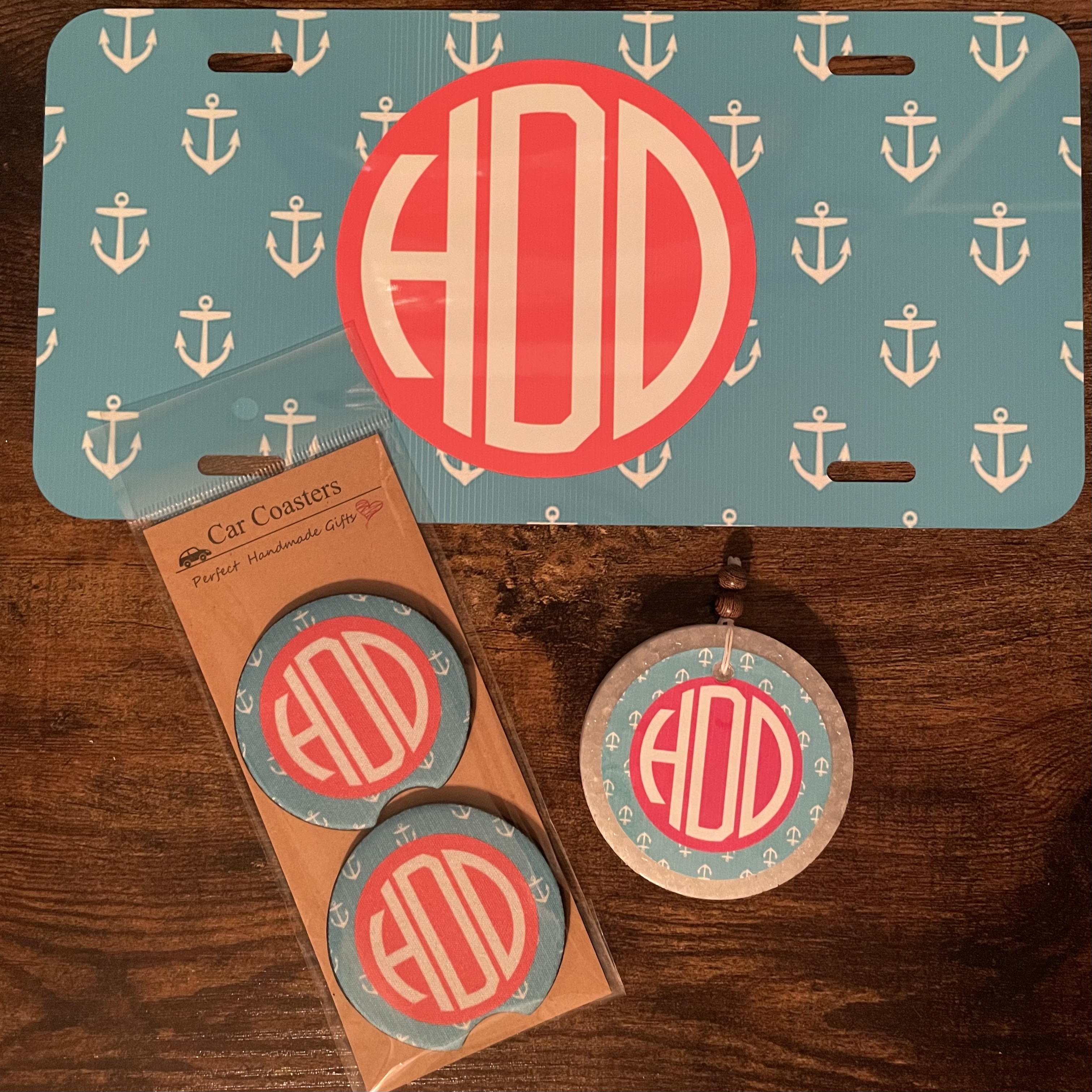 Bundle comes with a circle freshie, license plate, and a set of car coasters. I can personalize them any way you want.