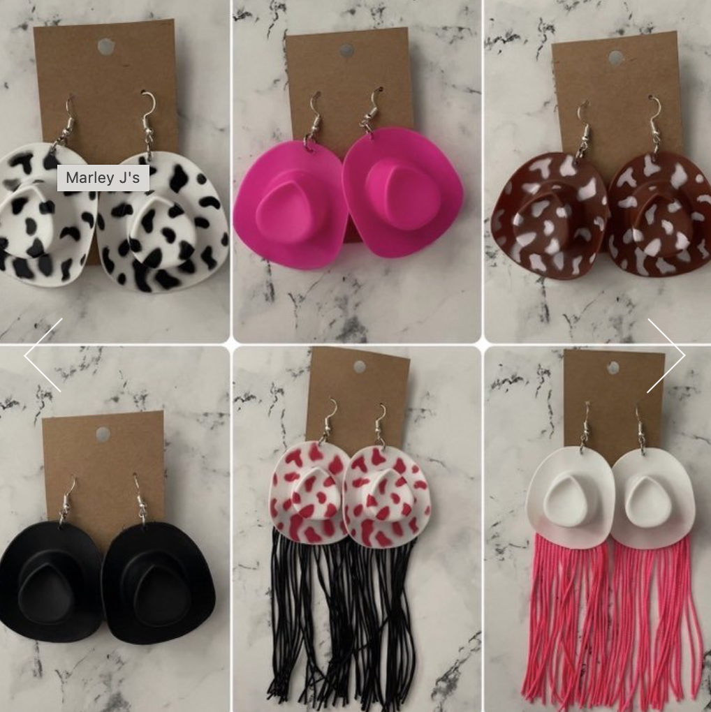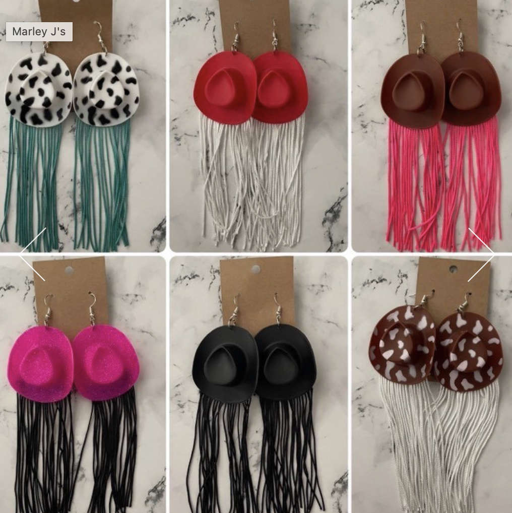 The posts are hypoallergenic and come with a rubber earring back. Can choose fringe color or none. Can also choose hat color.