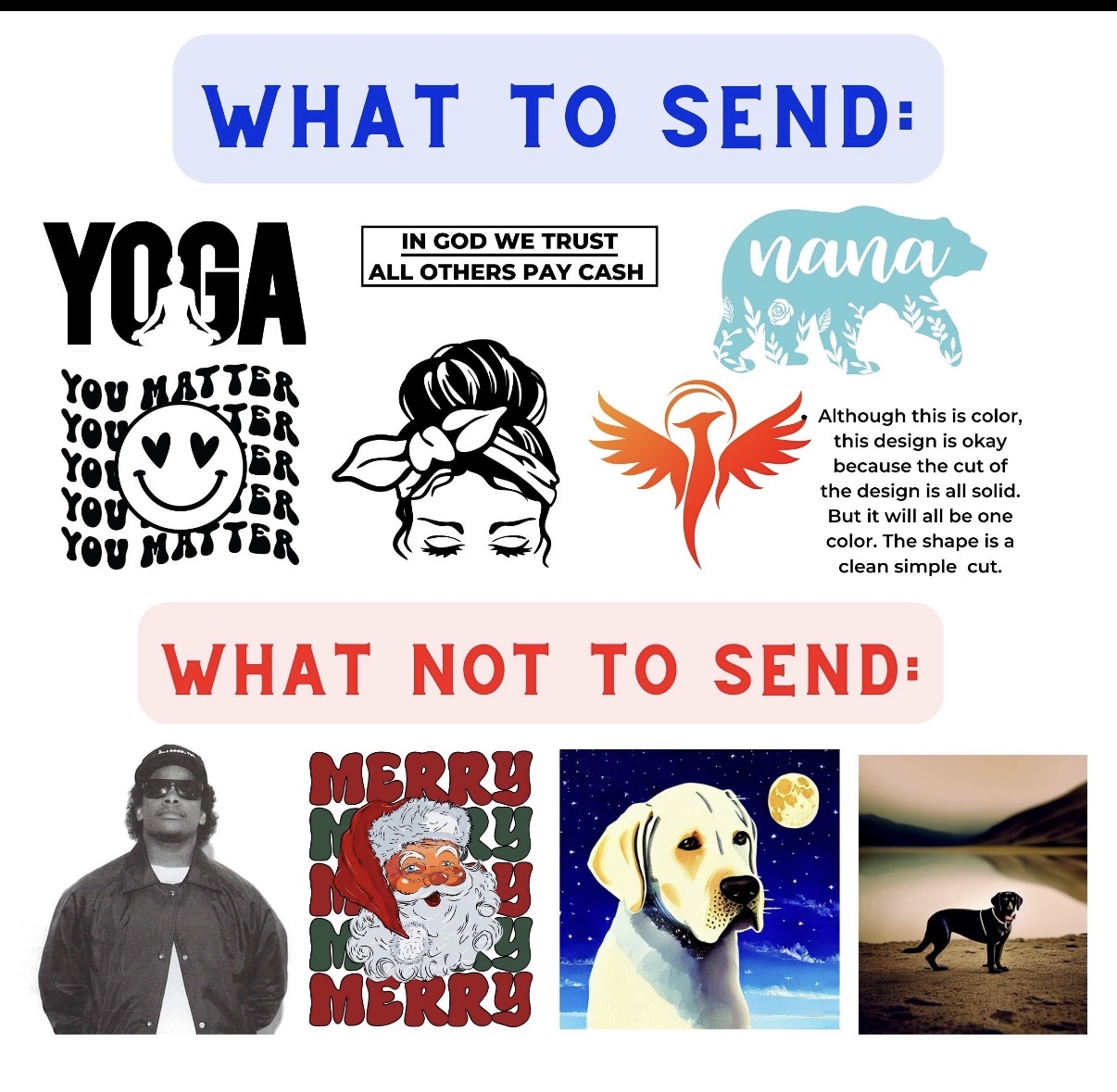 Leather patches can be circles or rectangle. The images on them can only be a single color decal. It has to be very simple for the silhouette to cut it. Color choices are single colors, cheetah, and camo.