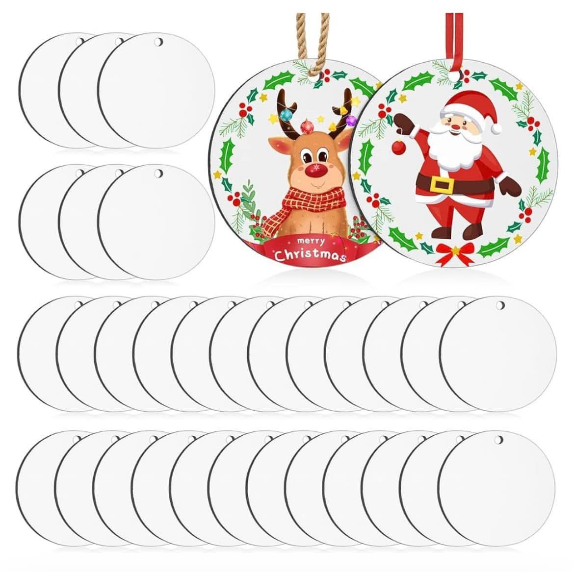 I can put any picture on these. They come with a string to hang. They are made from metal and are 2.75 inches across.