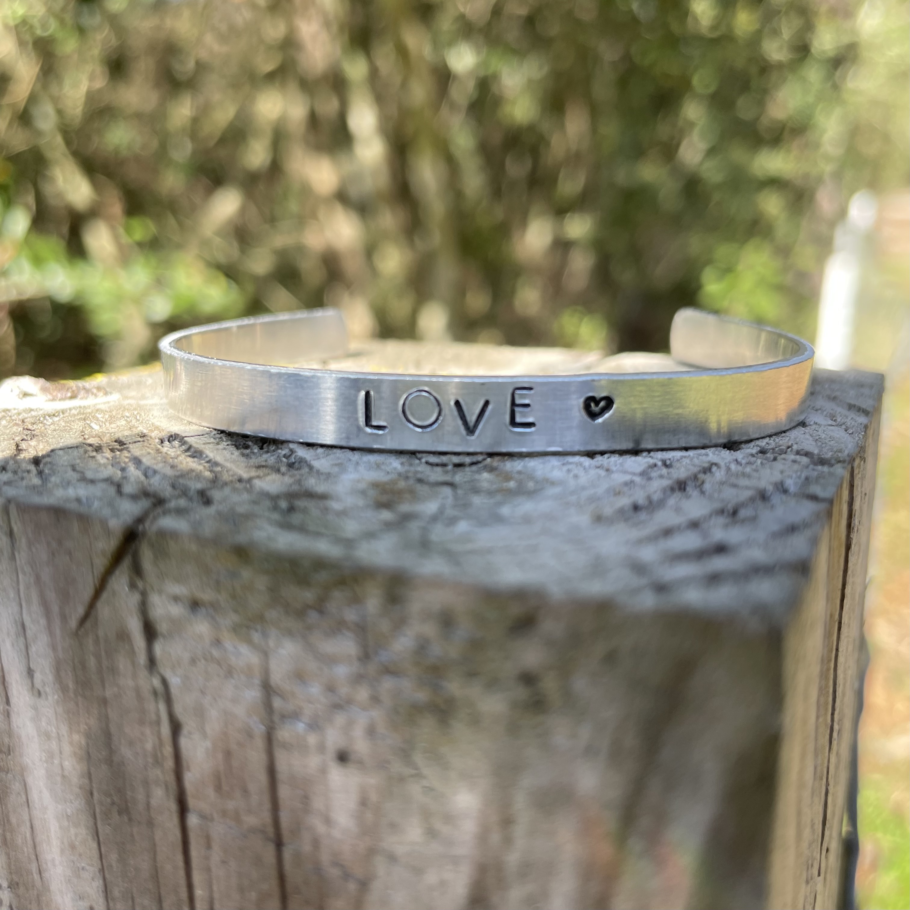 The bracelets are cuff style and will fit most sizes. They are made of aluminum and can bend slightly to fit around wrist. I can put names, words, and hearts.